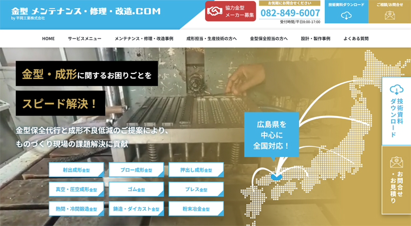 平岡工業株式会社(所在地:広島県広島市、代表取締役社長:平岡良介)は、金型に関するメンテナンス・修理・改造の依頼を円滑に受け付けるための専用サイト『金型メンテナンス・修理・改造.com』を公開いたしました。 本サイトは、製造現場で日々発生する「金型トラブル」や「段取り時間増加」、「製品不良」などの課題や製造現場のニーズに対し、迅速に相談・依頼できる窓口として開設しました。 金型メンテナンス・修理・改造.com 公式ホームページ → https://kanagatamente.com/ 是非ご覧ください。 |