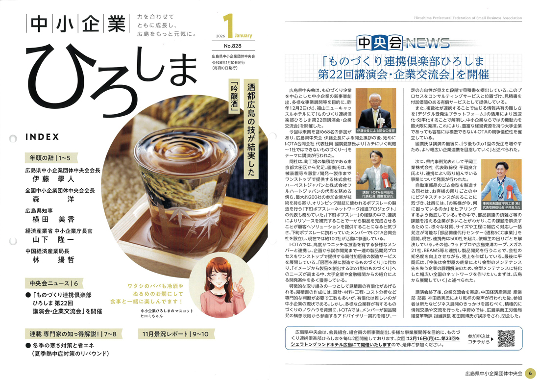 | 2026年1月 | 広島県中小企業団体中央会 令和8年1月10日発行「中小企業 ひろしま」に平岡社長が掲載されました。